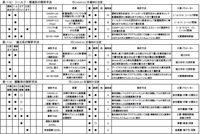 | ■影響要因別の影響範囲及び沈下量の解析手法 | ||||||||||