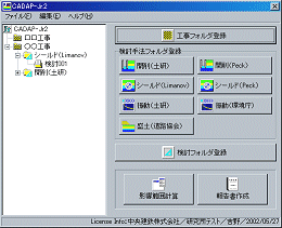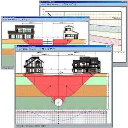 | CADAP-Jr. は、被害予測においてとりわけ重要な「影響範囲の予測」を、簡易式により算定するシステムです。工事が周辺建物に及ぼす影響範囲が、ひと目でわかるので、調査範囲を合理的に決定することができます。 |