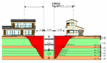 建設工事による沈下被害を判定します。建設工事による地盤沈下の影響範囲を定量的に求め、建物の影響度を定量的に判定します。これは、当所のこれまでの実験と研究の成果によるもので、他にはない技術です。