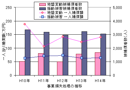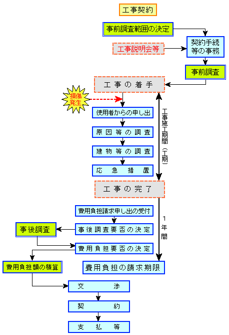 損害賠償請求権の時効は、損害及び加害者を知った時から3年または不法行為から20年と規定されています。事業損失では「工事完了後から1年以内に請求のあったもの」と規定されています。これは因果関係の判定を容易にするためで、これ以降に関しては損害賠償請求として対応する事になります。