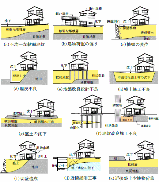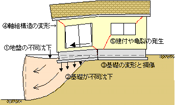 建物の傾斜及び部分的な沈下 |